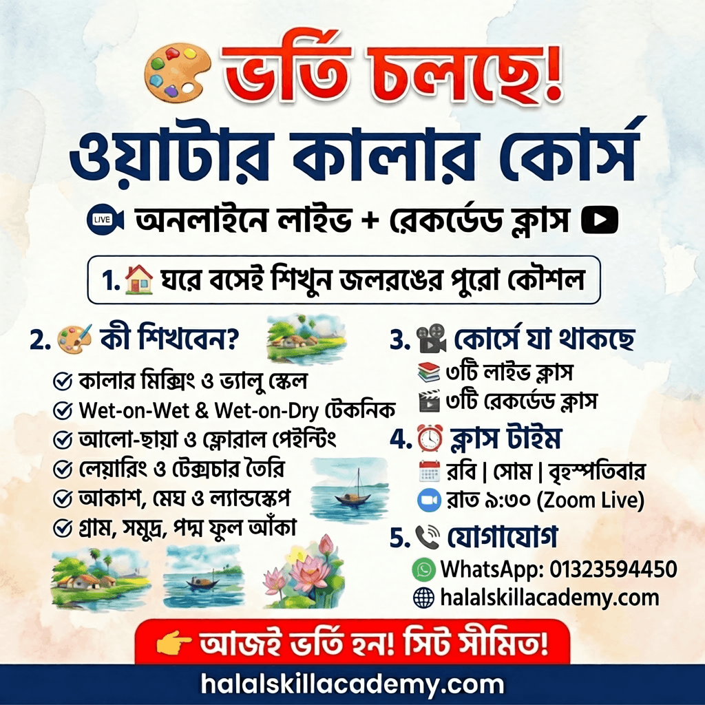 Be the first to review “জলরঙের বেসিক টু অ্যাডভান্সড: ফ্রী মাস্টারক্লাস (সদাকা প্রজেক্ট)” Cancel reply